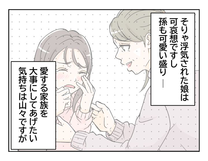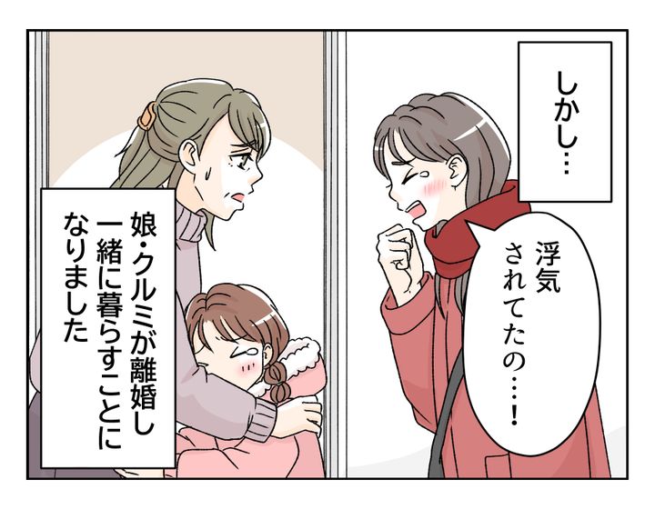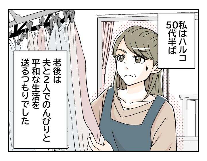 50代半ばとはいえ、ご主人も定年退職。「人生の第2ステージね」と少し早めの平和な老後を心待ちにしていたハルコさんでしたが、号泣するクルミさんを見たら放ってはおけませんでした。家で暮らすよう招き、はじまった生活は平和と真逆。増えた洗濯物は干して畳んで倍以上。食事に孫たちの相手に、体力は限界寸前。精神力だけで頑張る毎日のようです。