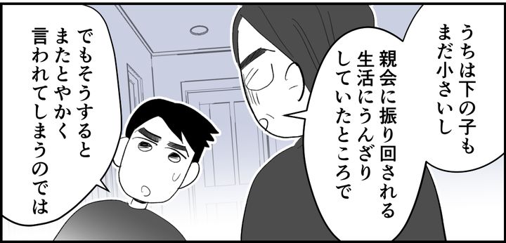 しかしそれが原因で副代表は代表や古株のママたちに「旦那さんを出してきて卑怯だ」と非難され、辞めざるを得なくなりました。