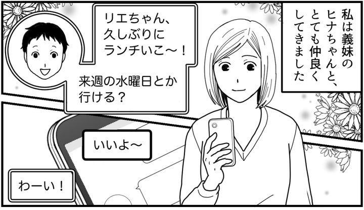 私(リエ)は、夫のヤスタカと夫婦2人で暮らしています。すぐ近くに義実家がありますが、義父は夫が高校生の頃に亡くなっており、義母も2年前に他界。現在、義実家には義妹であるヒナちゃんが子どもたち(タクくん・8才、ネネちゃん・6才)と住んでいます。ヒナちゃんは20才で結婚したのですが、子どもたちが幼い頃に離婚して義実家へ戻ってきたそうです。私はヒナちゃんとずっと、まるで姉と妹のように仲良くさせてもらってきました。