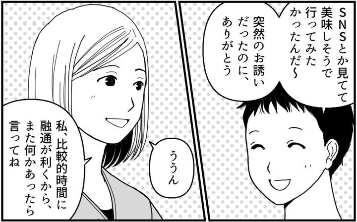 ヒナちゃんは平日仕事だし、休日は子どもたちの都合があります。ランチしようにも直前まで予定がわからないので、なかなか友だちを誘えないそうです。私は「明日行こう」と言われても応じやすいので、とても喜んでくれていました。