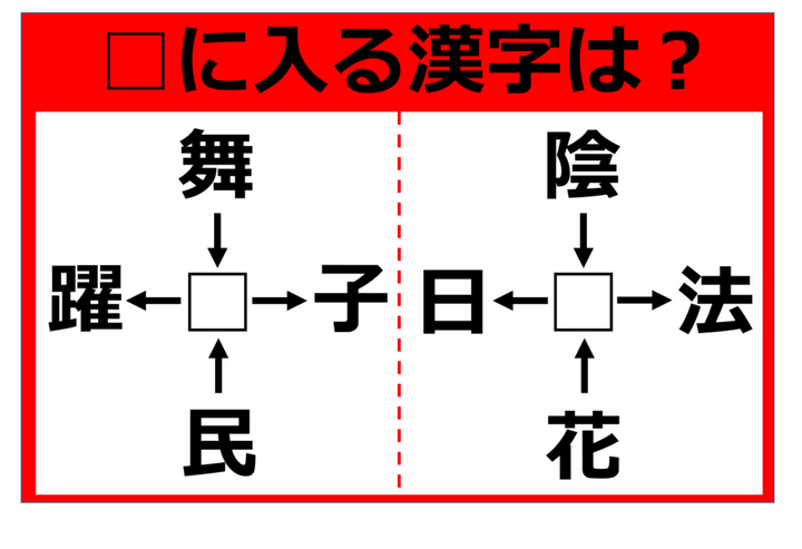 【漢字パズル】脳トレに挑戦!舞□、□躍、民□、□子 □に入る漢字は何…!?