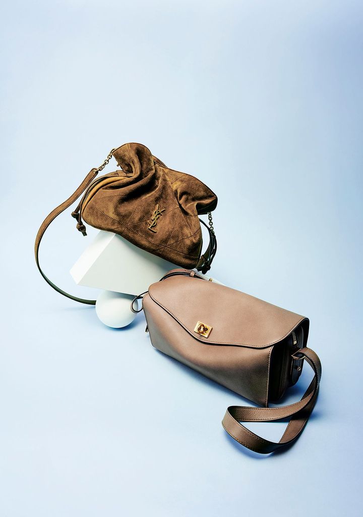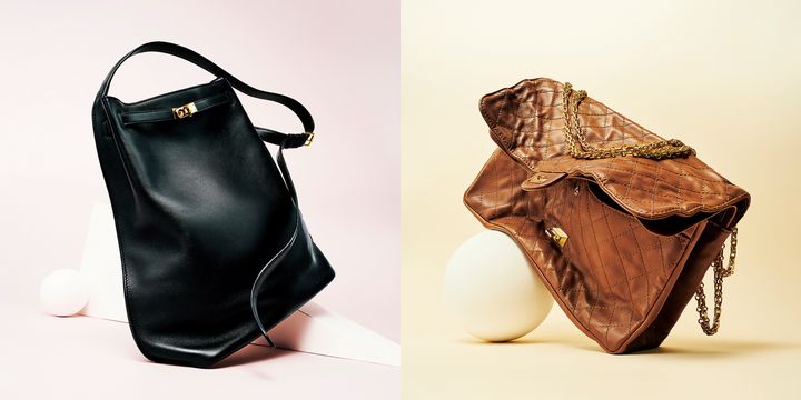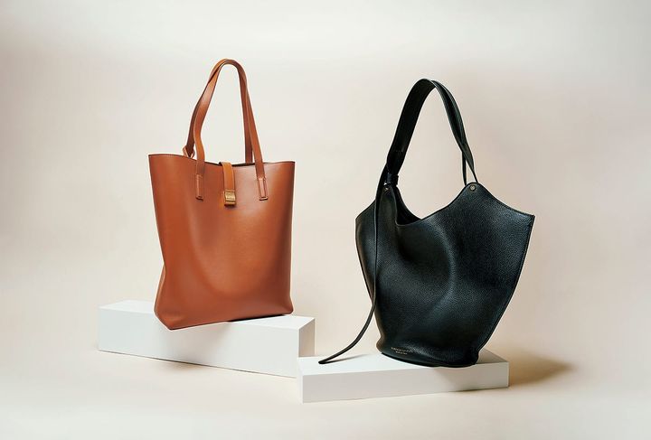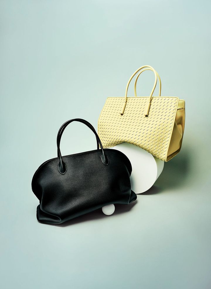 〈右〉バッグ“バーバラ”[W37.8×H25.8×D24]¥891,000(Bottega Veneta/ボッテガ・ヴェネタ ジャパン) 〈左〉バッグ“アグネス”[W44.5×H25×D22]¥902,000(The Row/ザ・ロウ・ジャパン) SHINMEI(Sept)