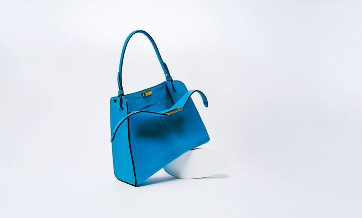アクアマリンブルーが目を引く“フェンディ ウェイ”。外側にはスエードを、ライニングにはカーフレザーを採用することで、ゴールドのツイストロックを開けると動きが出るように計算されています。タブレットや大きめの財布など、必要な荷物がすっぽりと収まる収納力もポイント。