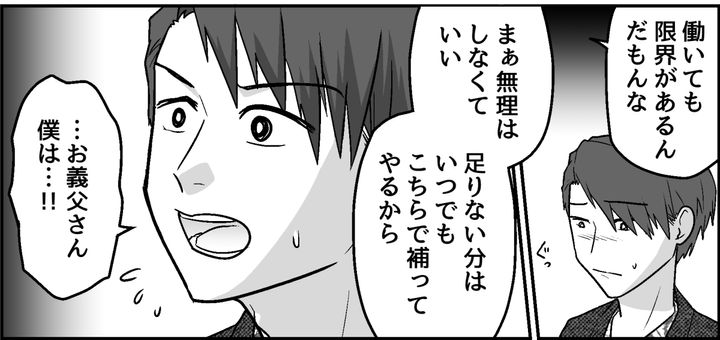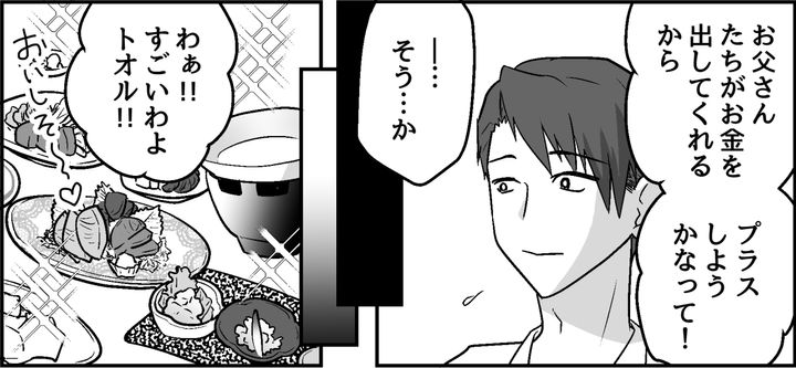 モモカもその力関係を当然だと思っているらしい。しかも平気で義両親に援助を頼み、俺のプライドを踏みにじってくる。イツキのために、この場の楽しい雰囲気を壊したくない……。そう思って途中までは必死で作り笑顔をしていたが、重苦しい感情は自然とにじみ出てしまったのだった。