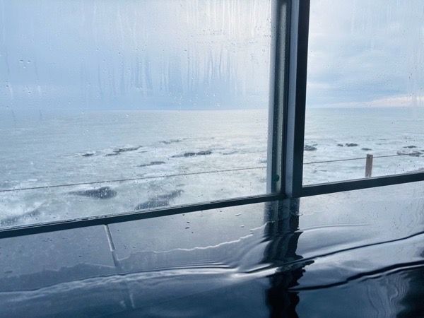 見てください!この絶景!!湯と海がつながってます。