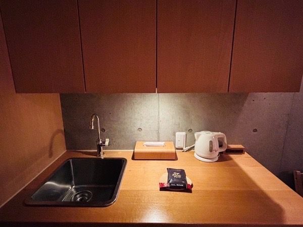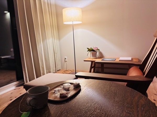 ドリンクの他に手軽に食べられるお菓子もサービスです。一口サイズのクッキー、チョコマシュマロをいただきました。至れり尽くせりで本当に素敵な旅館です。