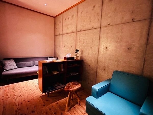 こちらが大浴場と同じ階にあるリラックススペースです。形や色の違うソファが置かれており、各々好きなスペースで広くゆったりと休息できます。心地よいアンビエントミュージックが流れ、副交感神経が緩みまくりです。