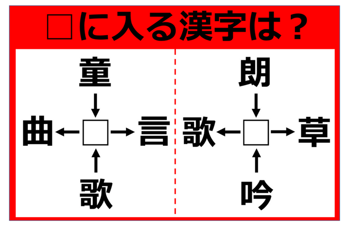 【漢字パズル】脳トレに挑戦!童□、□曲、歌□、□言 □に入る漢字は何…!?