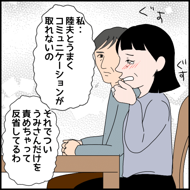 そんな中、夫が「抱き癖がつくから抱っこはしないでほしい」と言い出す。サポートに来ているうみの実母はそれを受け入れるが、義母は孫を抱っこしてばかり。うみが「私の母親はダメで自分の親なら抱っこしてもいい理由ってなに?」と夫に詰め寄ると、義母は「喧嘩なんてしないでよ!」と涙を流す。義母に経緯を説明するも、「義親にこんな悲しい思いをさせるなんて最低よ!」と理解ゼロ。うみは「わかりました、もういいです」と糸が切れたようで…。