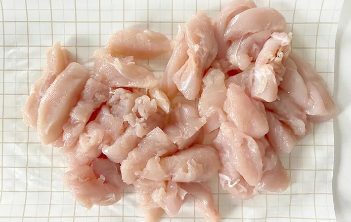 そこにささみを入れ、全体に衣がつくように揉み込みましょう。