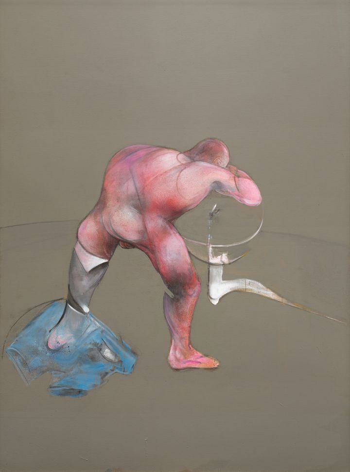 『Study from the Human Body Figure in Movement』(1982年)油彩。1980年代初頭に彼が関心を持っていたカドミウムオレンジ色とクリケットの図像というふたつの要素が含まれているⒸThe Estate of Francis Bacon All rights reserved DACS London ARS New York 2026 photography: Annik Wetter