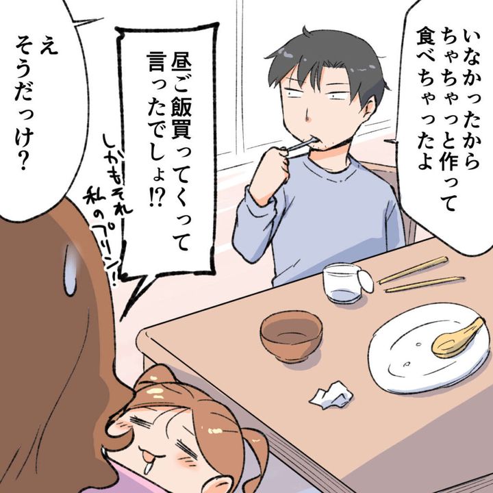 それもそのはず、その時にはオレはもう昼食を食べ終えていました。「いなかったから、ちゃちゃっと作って食べちゃったよ」そう伝えると、ゆきのは「昼ご飯買ってくって言ったでしょ!?」と声を荒らげます。そんな話を聞いた覚えのないオレは、「え、そうだっけ?」と首を傾げるしかありませんでした。