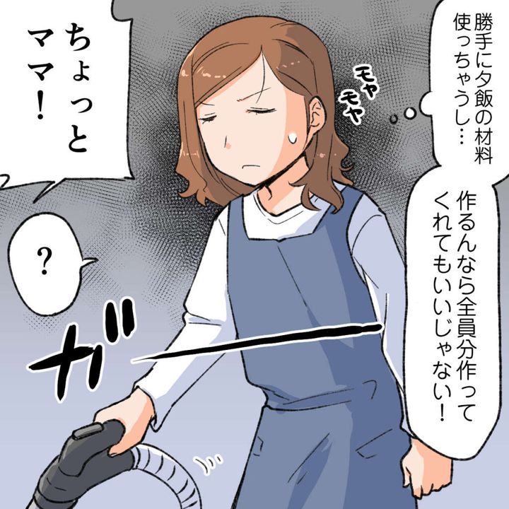 どうやらゆきのは、勝手に夕飯の材料を使ったことや、せっかく作るなら家族全員分用意しなかったことが気に入らなかったようです。けれど、それをオレに直接言うこともできず、モヤモヤした気持ちを抱えたまま、黙々と掃除機をかけていました。