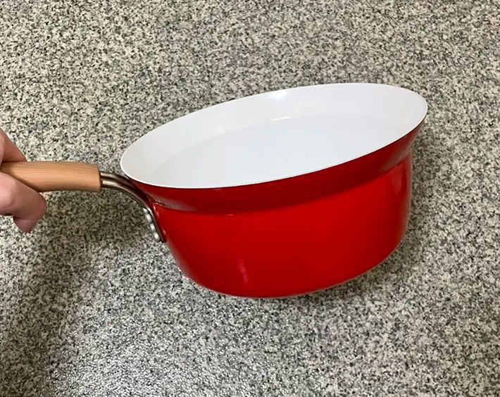 筆者は、用意したビニール袋に対して、収まりのいいサイズだった片手鍋を使いました。