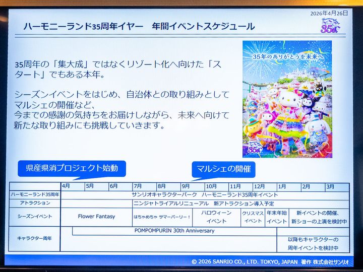 大分県日出町にある「サンリオキャラクターパーク ハーモニーランド」は、2026年4月26日(日)に開園35周年を迎えました。
