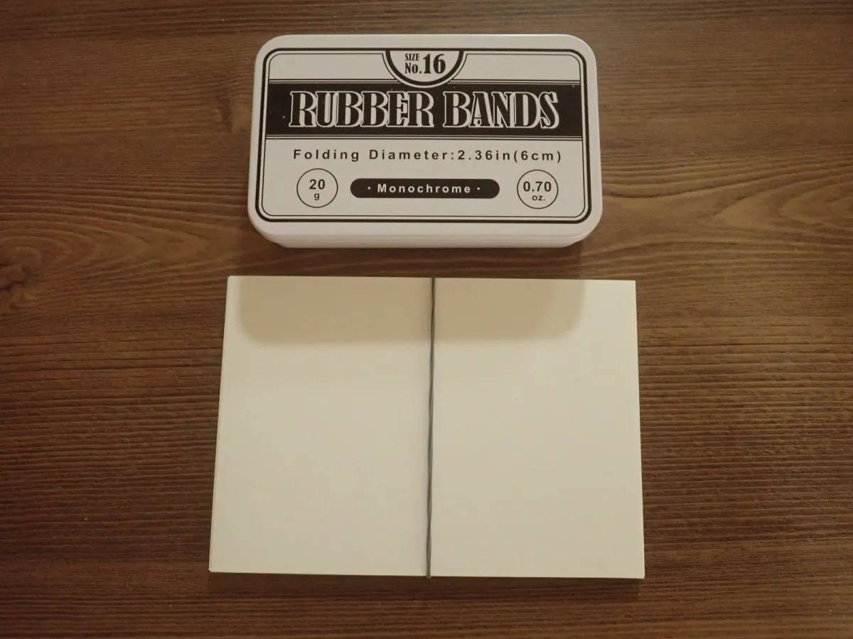 【ダイソー】おすすめ文房具③ゴムバンド(缶入り、モノクロ、長方形薄型)