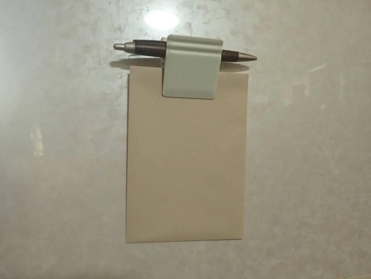 マグネットが強力で、クリップ部分にはペンも置けますよ。