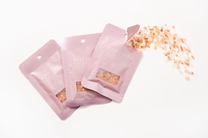 「こちらは、美STのライターさんから教えていただいたもの。美容仲間との女子会には自社栽培した農薬不使用の“食べられるバラ”を使い、バラのフレッシュな香りに癒されるバスソルトを♥ ピンクカラーのミネラル豊富なヒマラヤ岩塩とローズ水にヒト型セラミド5種類を配合しているので、お肌もしっとり! 美意識高い友人たちにも好評です」¥1,650(ROSE LABO)