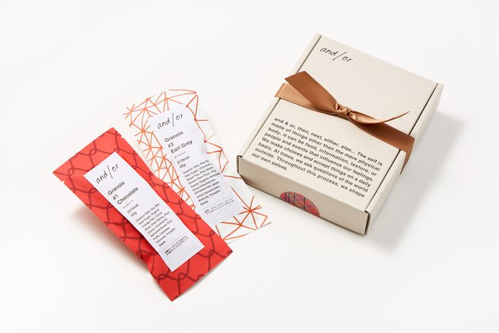 「食べること、美味しいものが好きな仕事仲間には、オーガニック・グルテンフリー素材にこだわったグラノーラを。2種類のテイストがセットになって、ひとつは甘さ控えめなチョコグラノーラ。有機オレンジピールがアクセントになり、発芽玄米パフのざくざく食感がクセに。アールグレイグラノーラは茶葉の香り高く、ドライイチゴ、くるみのスーパーフードたっぷり。私はそのままおやつに、豆乳やヨーグルトと一緒に朝食としていただくのですが、お酒のお供としてもおすすめです♪」¥1,846(and/or Granola)