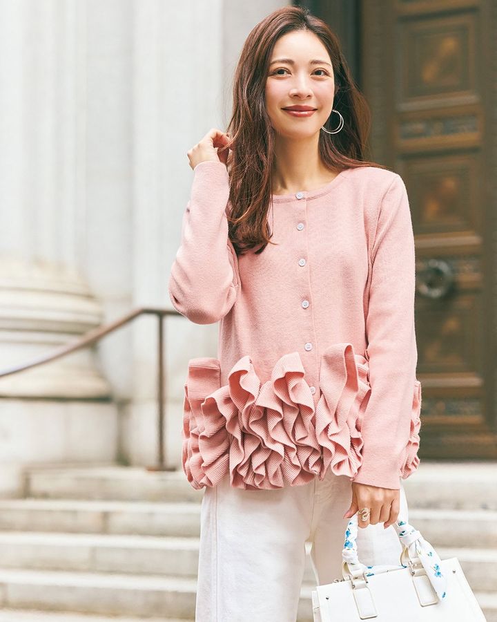 ②羽織りとして使えるから1枚持っておきたい!即華やぐ「フリルカーディガン」