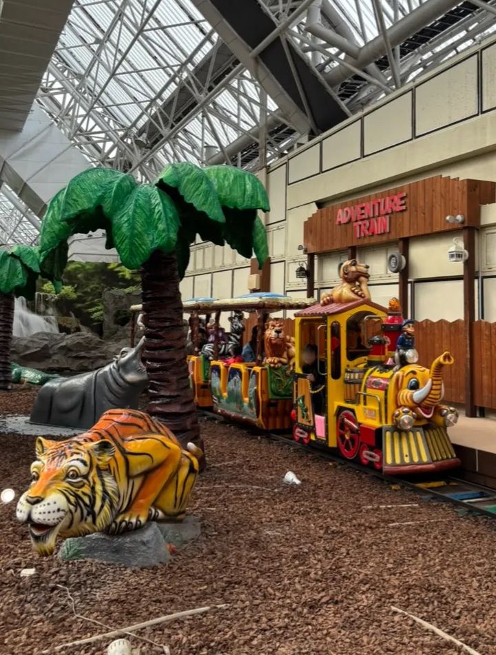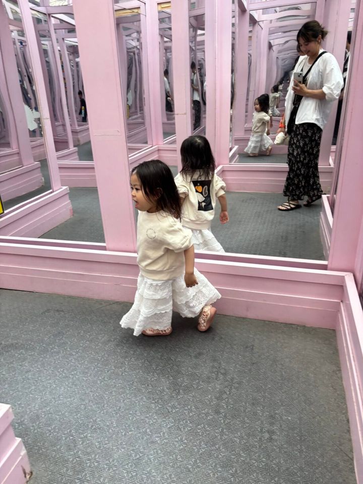 アトラクションも乗り放題で屋内プールと同じエリアのアドベンチャートレインや鏡だらけのお部屋、屋外遊園地でコーヒーカップなどのアトラクションも楽しんだよ!
