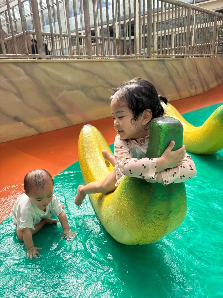これはもう仕方ないんだけど…普通に混んでた笑人気エリアはにぎやかだし、座る場所も早めに確保したほうが安心◎でもチケット制だから、ぎゅうぎゅうで動けないって感じではなくて“テーマパーク的な混み具合”ってイメージ!結論!コスパ重視ならかなりアリこの内容でこの値段なら、混むのも納得だな〜って感じ◎子供達が楽しそうだったからもう大大満足!!夏本番、もっと混む前に行くのめちゃくちゃおすすめです!しかもGW企画で私が行った時はオープンしてなかった屋外プールでイベントがあるみたいなので要チェックだよ!