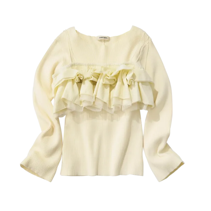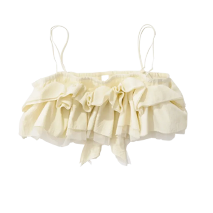 着回しに欠かせない、万能トップス。フリルたっぷりのビスチエは、どんなコーデにあわせても甘さをプラスできるから、使い勝手抜群。