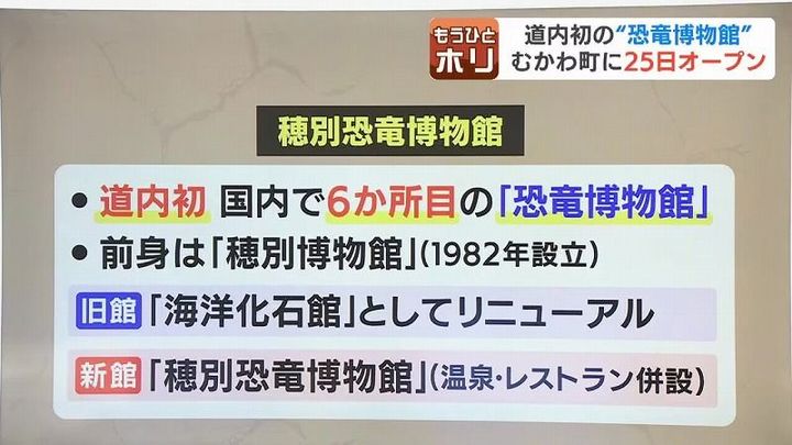 ちなみに、これまでの「穂別博物館」は、恐竜博物館の分館「海洋化石館」としてリニューアルし、むかわ町内で発見されたクビナガリュウの全身骨格やアンモナイトの化石などを展示する予定です。