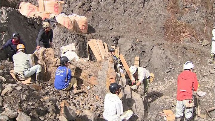 「雪があったから手袋でこうやって払って骨の断面見たら、やった、ワニ(の化石)採ったと思ったが、違った」と堀田さんは当時の様子を語ります。