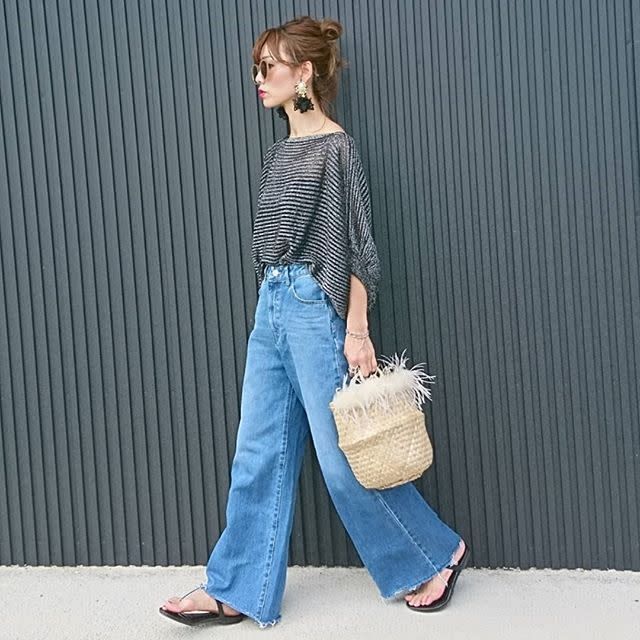 2018年のスナップではデニムパンツも多く見られました。超ワイドのゆるっとシルエットからすっきりしたストレートデニムまで、さまざまなシルエットを楽しむおしゃれさんが多数!