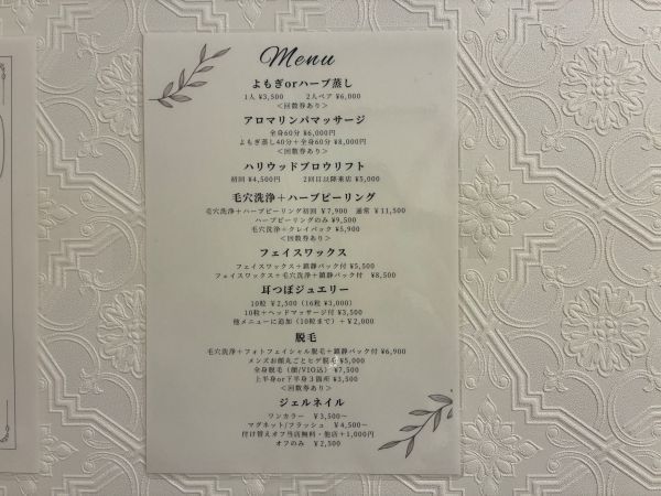 ちなみに、よもぎ蒸しとアロマリンパマッサージのセットメニューは、8,000円(税込)。それぞれ単体で施術を受けるよりも、お得だそうです。耳つぼジュエリーに関しては、ほかのメニューと一緒に施術を受けると、500円引きの2,000円(税込)で受けられるそうですよ!