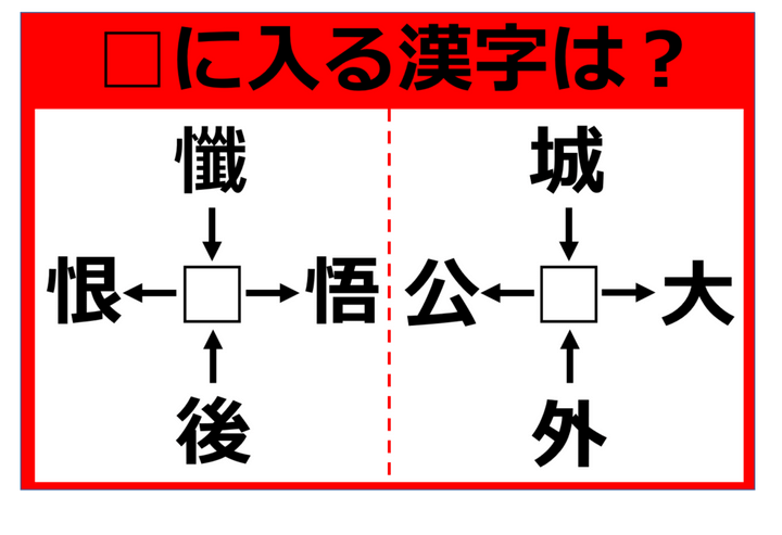 3. 【漢字パズル】脳トレに挑戦!懺□、□恨、後□、□悟 □に入る漢字は何…!?