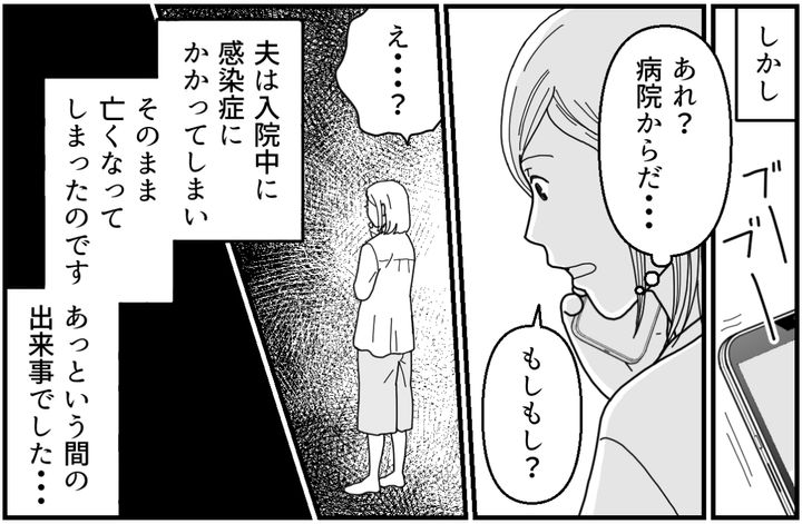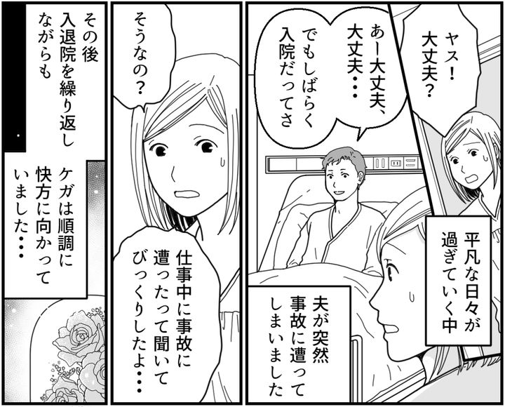 夫の死は突然でした。仕事中にした大ケガは、時間はかかりましたが確実に快方に向かっていました。それなのにまさか、感染症が原因で命を落とすことになってしまうとは……。