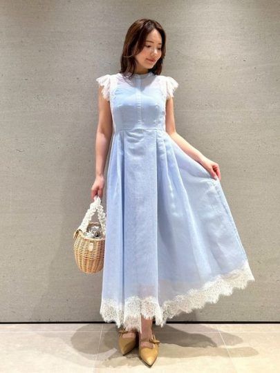 クリーンな淡いブルーにレディなレースを加え、好感度◎のワンピース。行く場所や相手を選ばずどんなシーンにも着られるから優秀。