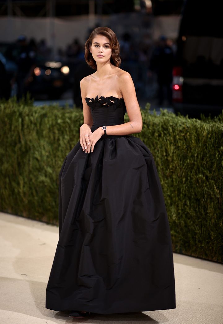 パンデミックの影響で2020年は中止となり、2021年は9月に開催されたメットガラ。カイア・ガーバーは、オスカー デ ラ レンタのドレスで登場し、1981年のビアンカ・ジャガーのルックにオマージュを捧げた。