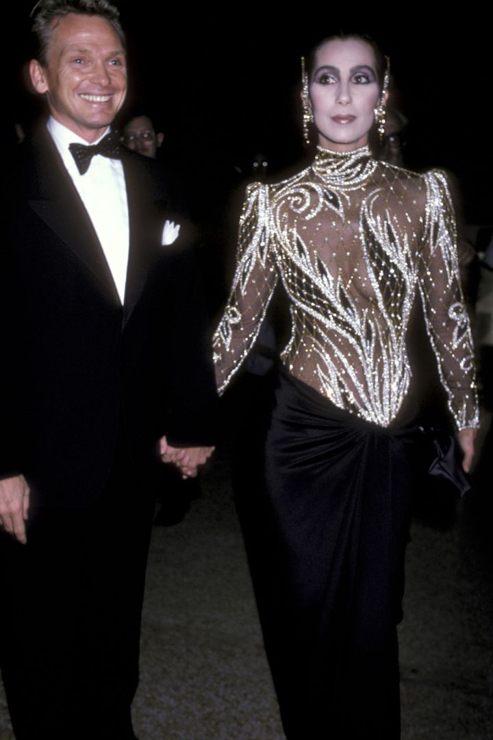 2回目のメットガラとなるこの年に最も注目されたのは、ネイキッドドレスの先駆けともなる衣装で登場したシェール。ドレスをデザインしたボブとともに出席。
