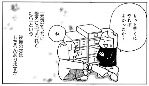 同居していた80代の母が亡くなり、遺品を整理することになった漫画家の堀内三佳さん。母が気に入っていたものから車椅子、仏具、仕事道具など多岐にわたるものを片付けている間に生まれたのは、母への後悔、そしてそこから得た教訓だった――。実際に母の遺品を整理した体験を綴ったエッセイ漫画『母の遺品整理で学んだ人生を軽くする方法』(竹書房)。その中で経験した物理的な困難から、もう届けられない母への想いまで。感じたこと、そしてそれを「人生を軽くする方法」と題して届けようと考えた経緯を堀内さんに伺った。