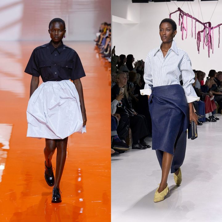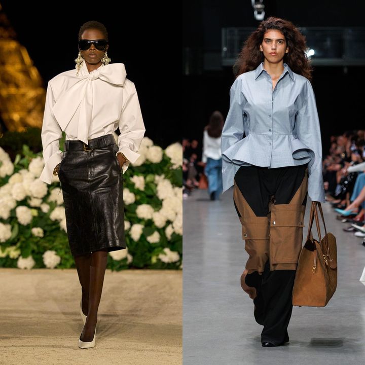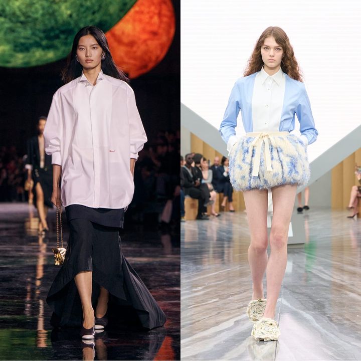近年のコレクションで目立ったのが、シャツを対比の要素として取り入れたスタイリングです。規律的な印象を持つシャツに、ドラマティックなスカートや装飾的なアイテムを掛け合わせることで、意図的な抜けが生まれます。そこには新しさへの挑戦や、オンとオフの境界が揺らぐような感覚があり、実用性と華やかさの対比が現代的なエレガンスへと昇華されています。