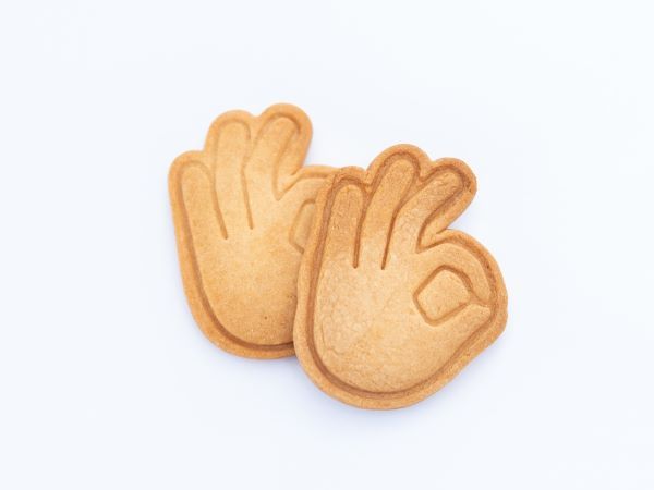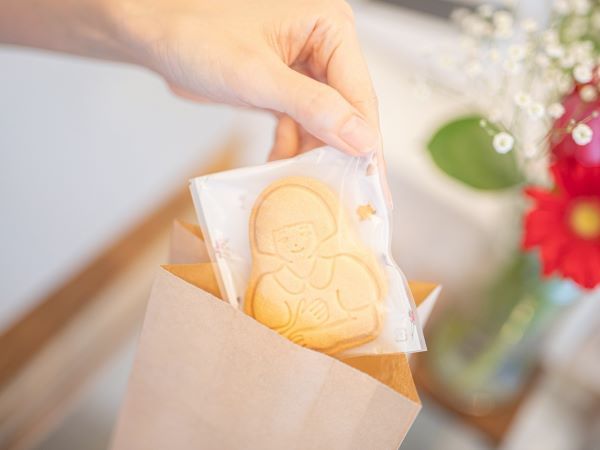 そして「めめ菓子工房」の一番人気かつお店のコンセプトを体現した商品がこちらの二種類のクッキー。「めめクッキー」は手話の指文字の「め」を表す手の形、「ありがとうクッキー」は、手話で「ありがとう」と表現する人をかたどったものです。 サクサクとした食感と、優しい甘みの美味しいクッキーの中には深いメッセージが込められています。