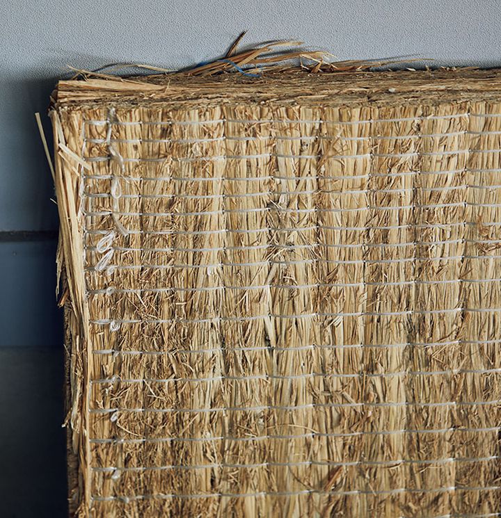 畳の芯材「畳床」は、元々は稲藁を圧縮して作られる。これは伝統的なタイプだが近年ではポリスチレンフォームを用いる建材床が主流に。