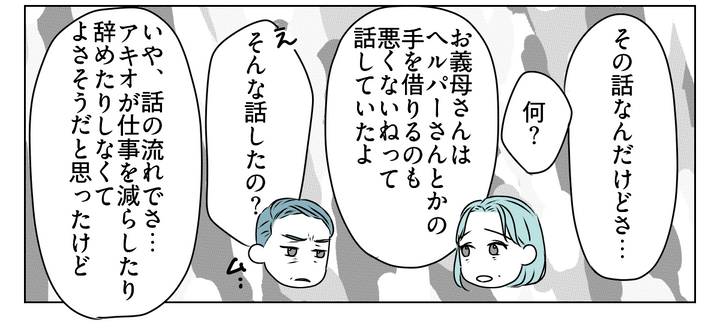 私は夫に、義母のもとを訪ねたことや義母が介護サービス利用に前向きな姿勢だったことを伝えました。しかし夫は「俺の母親のことだから口を出すな」と聞く耳を持たず、相変わらず仕事を辞める可能性も否定しませんでした。