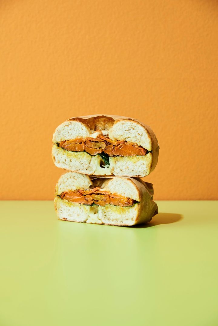 「自分が好きだったにんじんの食べ方をサンドに」という思いから生まれた、中島さんのセンスが光る一品。にんじんをガーリックオイルとクミンで香ばしくローストし、にんじん本来の甘みを引き出している。コク深い味噌マヨネーズと大葉、スパイス塩で、ガツンと印象に残る味わいに。