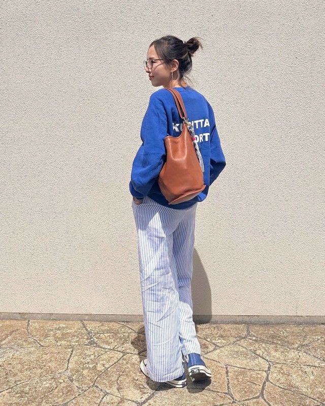 モデル:石田祥子さん身長:165-170cmスナップで着用しているストライプパンツのブランドは>>H&M(エイチアンドエム)