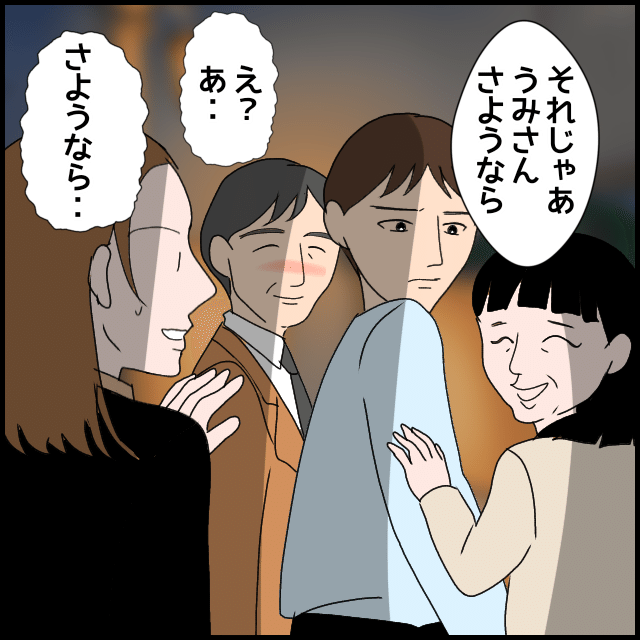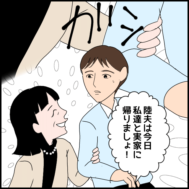翌日、義母が帰国前に「昨夜はごめんなさい」と謝罪に来る。しかし、「私、息子とうまくコミュニケーションが取れないの」と涙を流し、「昔から体調を崩しても言ってくれない」「会話はテレビの話だけで寂しかった」などと的外れなことを言い出すのだった。