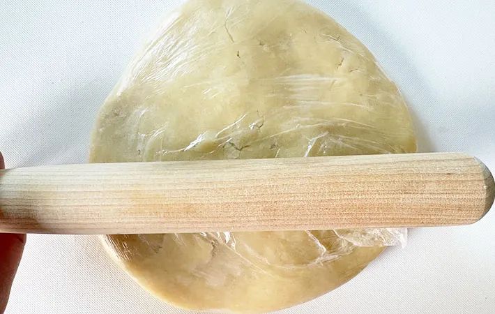 冷蔵庫から生地を取り出したら、めん棒などを使って1cmくらいの厚さに伸ばしてください。