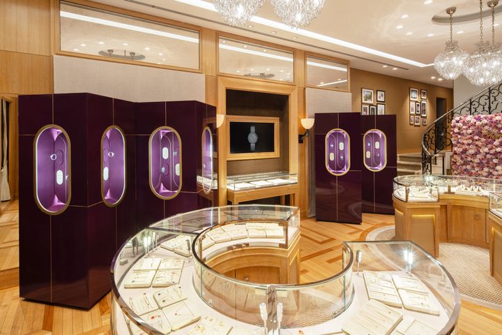 “ルール・ドゥ・ディアマン”が最もユニークな作品を生み出した1960年代、1970年代、それぞれの時代の美学を映し出しながらも、決して色あせることのないタイムレスな輝き――そこには、数世代にわたり職人たちの手で紡がれてきた、圧倒的な“サヴォアフェール(経験知)”が息づいている。また3階には、最新のクリエイション“プレシャス アワーズ”の展示や職人技を紹介するスペースも。