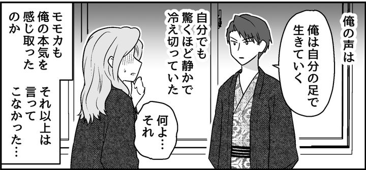 俺のプライドなんてモモカにとっては何の価値もないんだろう。今日、それが確信に変わった。けれど俺は誰かに支配される人生を送るんじゃなくて、自分の力で生きていきたい。俺はそんな思いを、モモカに向かって淡々と伝えた。