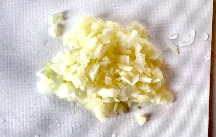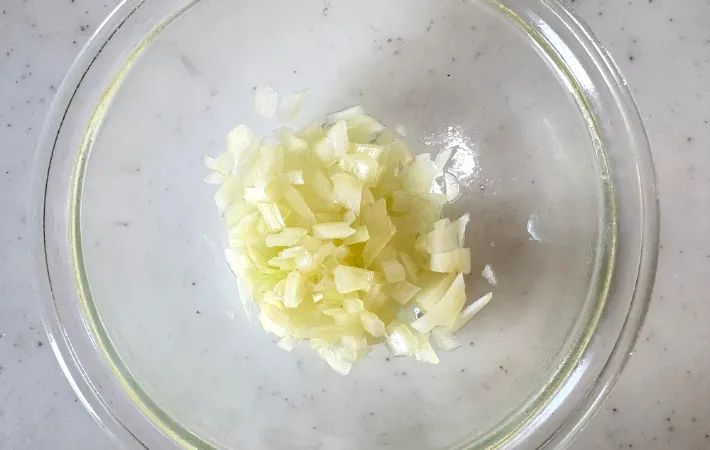 タマネギは、ボウルに入れてラップをせずに600Wに設定した電子レンジで1分加熱してください。