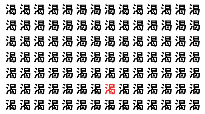 たくさんの「渴」の中に、よく似た別の漢字が1文字だけ隠れています。