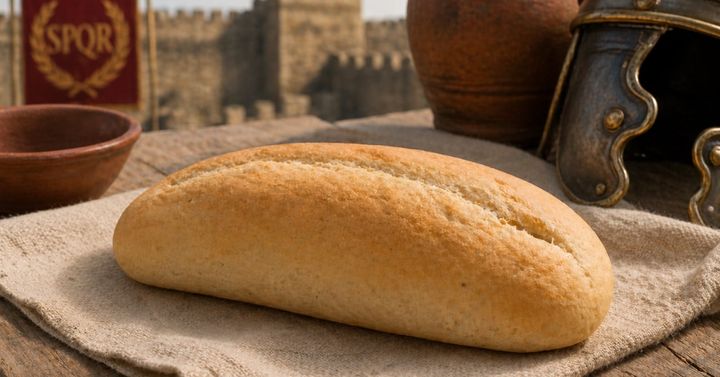 実際、古代ローマのパンとして有名な例には、西暦79年の噴火で埋もれたポンペイのパン屋から見つかった炭化パンがあります。